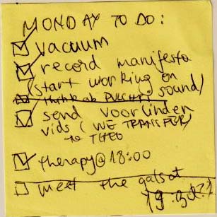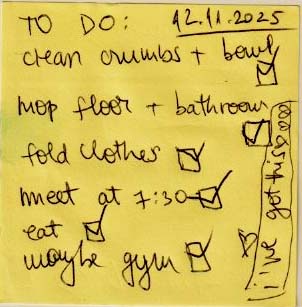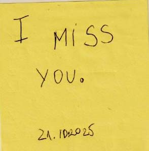 Collecting is a part of who I am as an individual. What you see here is a collection of Post Its that I've written and collected in the past 3 years of university.The first documented date is "13 Nov 2023". The last one is "11.12.2025". I saved these sticky notes because I was afraid I would forget who I was and who I will be. I cling to every bit of paper that could bring me back to who I am as a person. The action of writing a post it note, peeling it off and then just being able to move it around or discard yourself of it is almost a ritualistic part. It is satisfyingly tactile. It is a good way to document everyday life. I will always document.